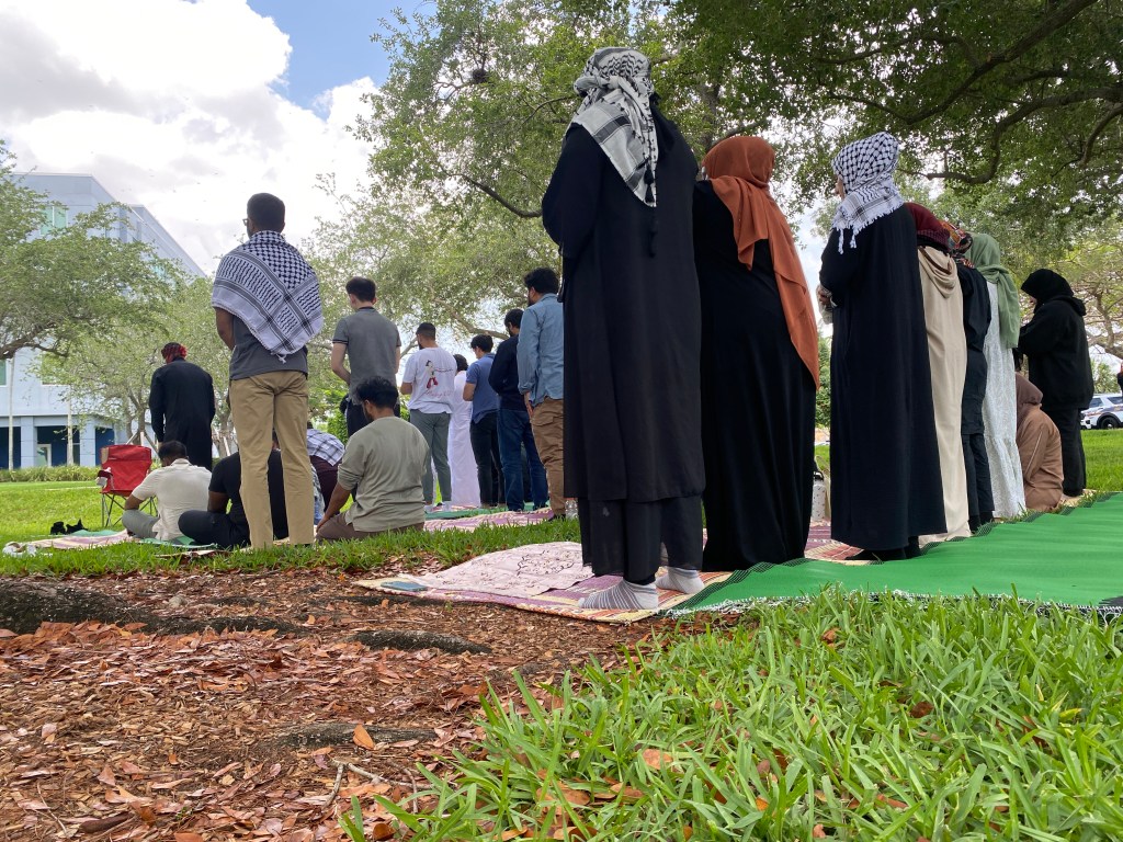 On Friday, more students and community members gathered for a Jum’ah prayer led by Mufti Sultan, the Iman of the Islamic Foundation of South Florida. Prayers started at 2 p.m., followed by a teach-in.