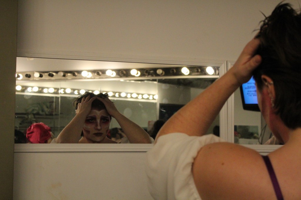 “It’s nerve-racking because this is my first performance in drag ever and my second performance taking my clothes off onstage,” drag queen Angelina D.Vine says, before hitting the stage with their burlesque piece. “I am definitely looking forward to the critique as a way that I can continue to grow and improve my drag from my baby steps here.”
