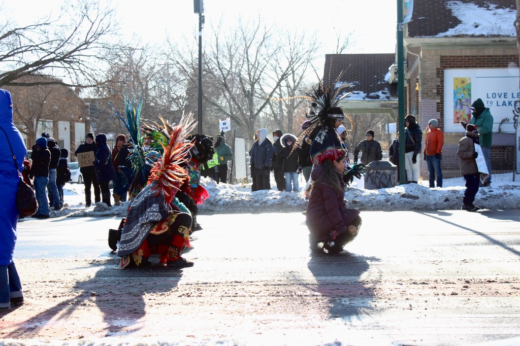 Minneapolis streets were blocked off Saturday morning after hundreds marched down Lake Street, towards Karmel Mall in protest of the increased ICE presence in the Twin Cities, despite freezing winds.